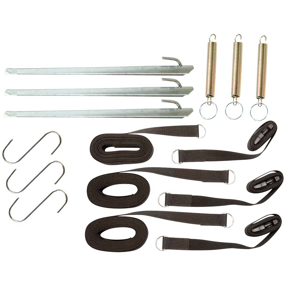 - Set bestaande uit 3 stormbanden, 3 veren, 3 stormharingen, en 3 s-haken.